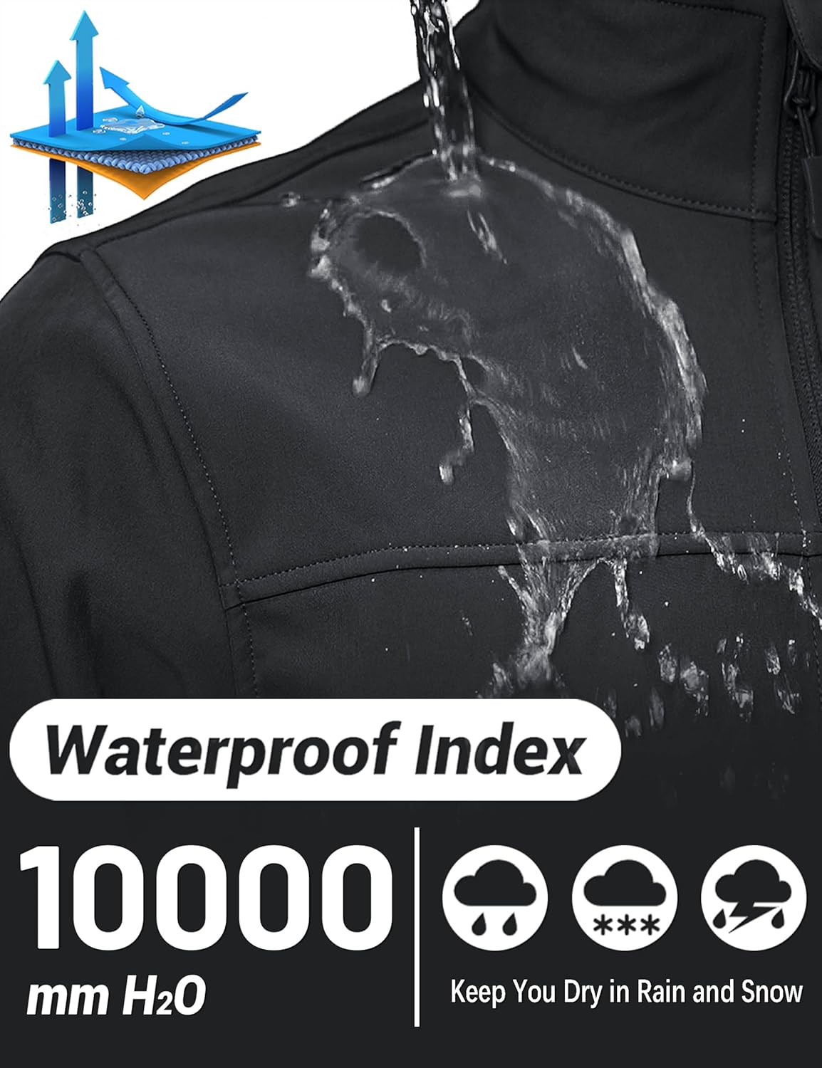 • Waterproof & Breathable—— mens softshell jacket features a high-performance waterproof fabric (10,000mm rating) and a breathable lining (5,000g/m²/24hr) to block rain while keeping you dry and comfortable.