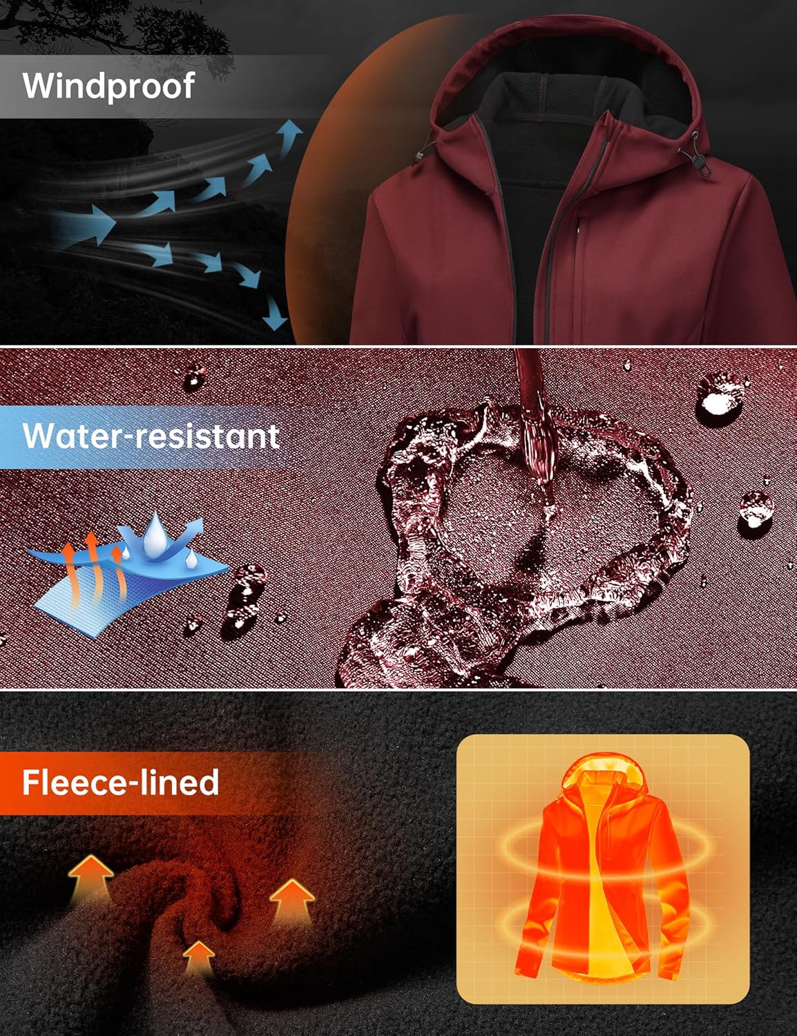 • 【Warmth】This fleece lined softshell jacket is made of soft fleece lining fabric, which is effective in keeping warm,soft,comfortable